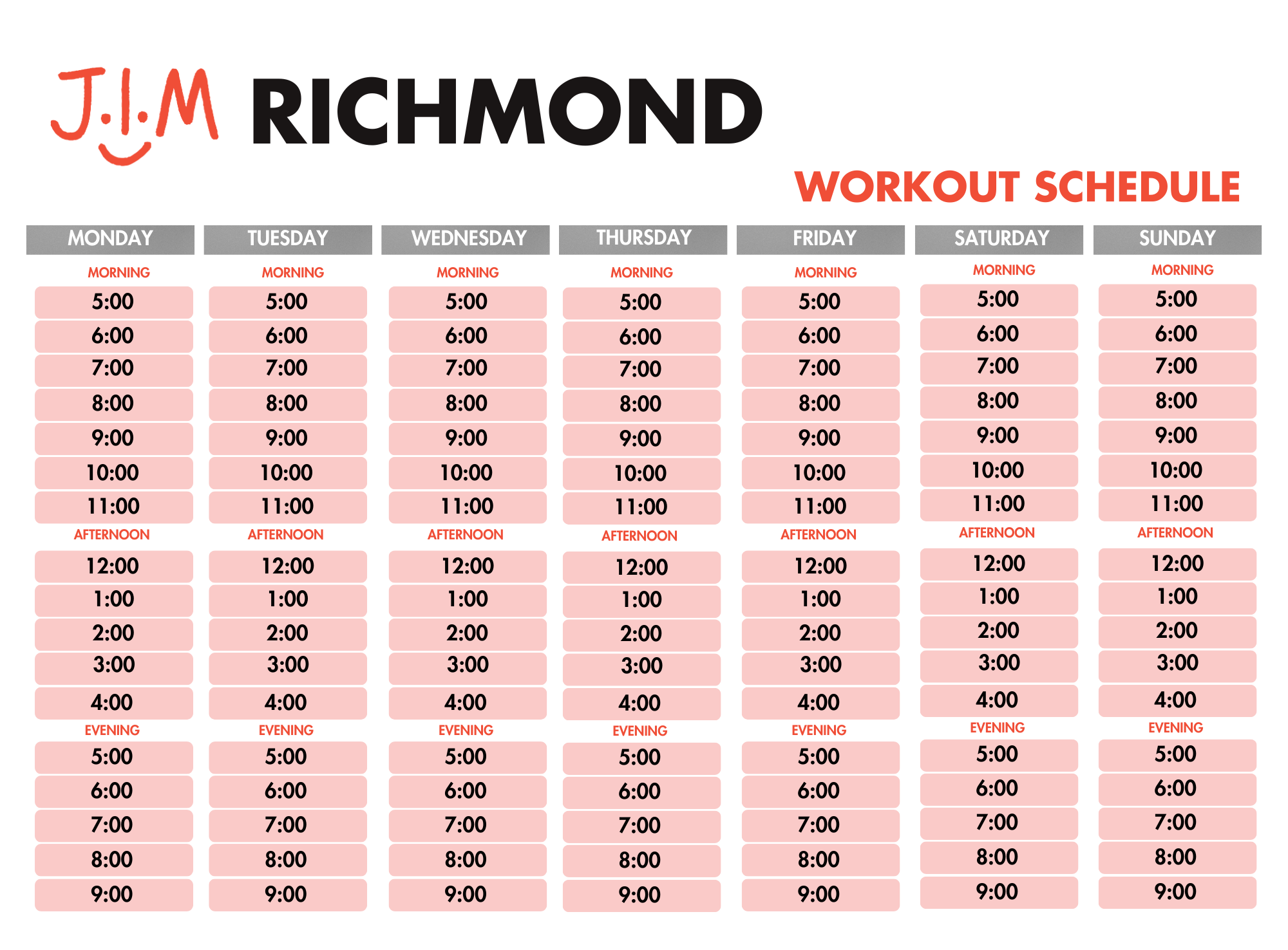 J.I.M Timetable & Opening Hours